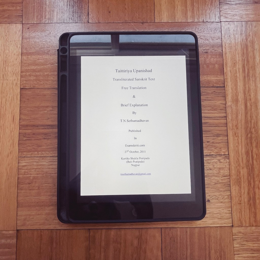 (Las citas están tomadas de una de las pocas traducciones al inglés que encontré del Taittriya Upanishad, traducidas al español por mi. Me tomé algunas libertades pero intenté conservar lo esencial.)
